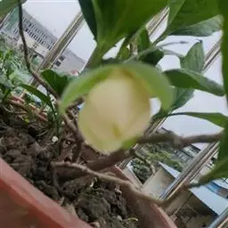花杂性,雄花两性花异株;雄花:花被片9-14,外轮3-4片浅黄色,倒卵状长圆形,长2.5-3.5厘米,宽1.2-2.5厘米,内2-3轮白色,较狭少;雄蕊30-70枚,雄蕊长9-11毫米,花药长8-10毫米,花丝长1-2毫米,药隔伸出成短尖,花丝及药隔紫红色;有时具1-5心皮的两性花、雄花花托顶端长锐尖、有时具雌蕊群柄,两性花:花被片与雄花同形而较小,雄蕊10-35枚,雌蕊群卵圆形,绿色,具雌蕊10-20枚。