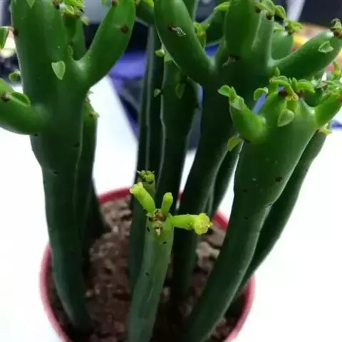小乔木,高2~6米,直径10~25厘米,老时呈灰色或淡灰色,幼时绿色,上部平展或分枝;小枝肉质光棍…