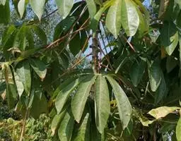 叶有小叶6~9,最多至11;叶柄长15~30厘米,疏生星状短柔毛或无毛;小叶片纸质至革质,椭圆形、长圆状椭圆形或倒卵状椭圆形,稀椭圆状披针形,长9~17厘米,宽3~5厘米,幼时密生星状短柔毛,后毛渐脱落,除下面沿中脉和脉腋间外均无毛,或全部无毛,先端急尖或短渐尖,稀圆形,基部渐狭,楔形或钝形,边缘全缘,但在幼树时常有锯齿或羽状分裂,侧脉7~10对,下面微隆起,网脉不明显;小叶柄长1.5~5厘米,中央的较长,两侧的较短,疏生星状短柔毛至无毛。