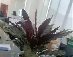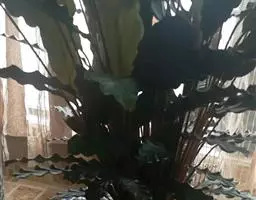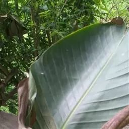 茎干高达8米,木质。叶片长圆形,长90-120厘米,宽45-60厘米,基部圆形,不等侧;叶柄长1.8米。