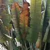 花序腋生,总花梗较叶柄为短,花序上通常有2个大型佛焰苞,佛焰苞绿色而染红棕色,舟状,长25-32厘米,顶端渐尖,内有花4-9朵,花梗长2-3厘米;萼片披针形,白色,长13-17厘米,宽约1.5-3厘米,下方的1 枚背具龙骨状脊突,箭头状花瓣天蓝色,长10-12厘米,中部稍收狭,基部戟形,中央的花瓣极小,长圆形,长6-10毫米;雄蕊5枚,线形,长约5厘米;花柱线形,长16-20厘米,柱头3裂。 [2-3]