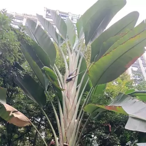 大鹤望兰,姜目旅人蕉科鹤望兰属植物。茎干高达8米,木质。叶长圆形,基部圆并偏斜;叶柄长1.8米。花…