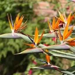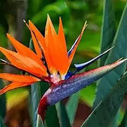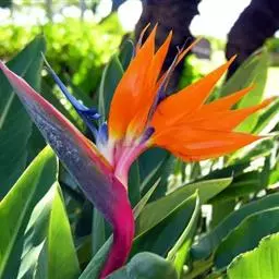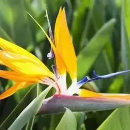 鹤望兰,别名天堂鸟,为鹤望兰科鹤望兰属的一种多年生草本植物;无木质树干;花序生于与叶柄近等长或稍短的花序梗上,佛焰苞1;花较小,萼片橙黄色,长7.5-10厘米,箭头状花瓣基部具耳状裂片,暗蓝色;花期在冬季。该物种原产非洲南部,在中国南方大城市的公园、花圃有栽培,北方则为温室栽培。性喜温暖湿润、阳光充足的气候,适宜生长的温度为25℃左右,耐干旱、较耐寒、不耐水湿,要求疏松肥沃、排水良好,以土层深厚的沙壤土为宜。因花形美丽似鹤,花开时犹如仙鹤翘首远望,花朵寿命亦长,故中文名为鹤望兰。鹤望兰素有“鲜切花之王”的美誉,是一种名贵的观赏花卉,深受广大消费者喜爱。同时,鹤望兰也宜大盆栽植,布置在公园、客厅、会议室、展厅候机室等处。鹤望兰是美国洛杉矶市的官方花卉象征。