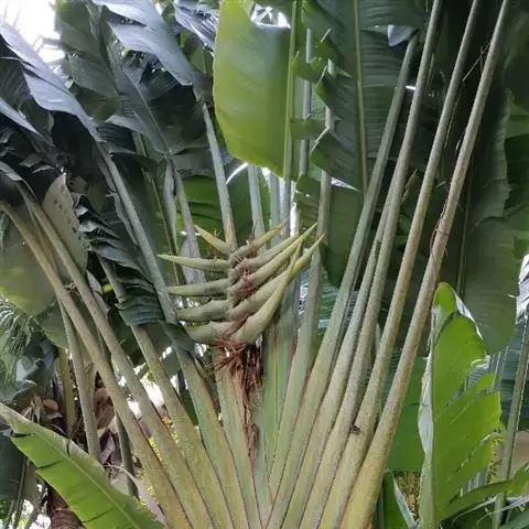 旅人蕉是鹤望兰科旅人蕉属的常绿乔木状多年生草本植物。茎似棕榈;树干直立丛生,圆柱形像棕榈,…