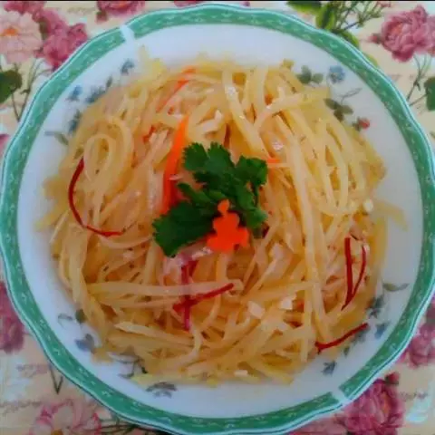 炝拌土豆丝是一道简单的家常菜,制作原料主要有土豆丝、胡萝卜、青红辣椒等,注意土豆丝放入凉水中要多换…