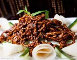 京酱肉丝,是一道知名度很高的菜肴,它是北京菜中的经典代表菜之一。制作时选用猪瘦肉为主料,辅以甜面酱…