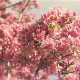 明代《群芳谱》记载:海棠有四品,皆木本,这四品指的是:西府海棠、垂丝海棠、木瓜海棠和贴梗海棠。垂丝海棠柔蔓迎风,垂英凫凫,如秀发遮面的淑女,脉脉深情,风姿怜人。宋代杨万里诗中:“垂丝别得一风光,谁道全输蜀海棠。风搅玉皇红世界,日烘青帝紫衣裳。懒无气力仍春醉,睡起精神欲晓妆。举似老夫新句子,看渠桃杏敢承当。”形容妖艳的垂丝海棠鲜红的花瓣把蓝天、天界都搅红了,闪烁着紫色的花萼如紫袍,柔软下垂的红色花朵如喝了酒的少妇,玉肌泛红,娇弱乏力。其姿色、妖态更胜桃、李、莕。