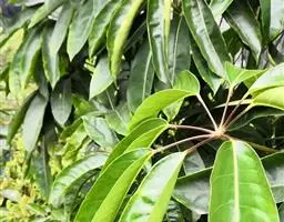 昆士兰伞木,吕松鹅掌柴 ,称昆石兰遮树,澳洲鸭脚木、方式叶鹅掌柴、伞树、大叶伞。叶片阔大,柔软下…