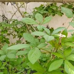 鹅掌藤,五加科,鹅掌柴属藤状灌木,叶柄纤细,圆锥花序顶生,花白色,花期7月,果实卵形果期8月。…