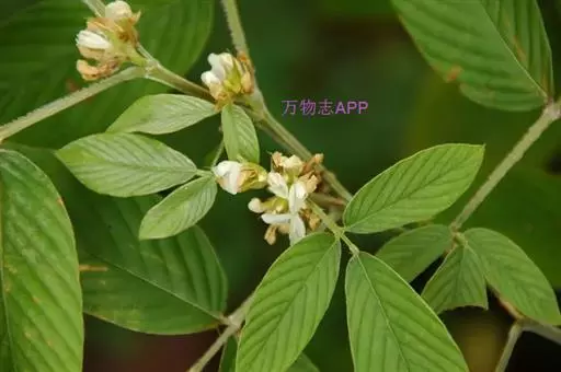 灌木,高1-2米;嫩枝三棱形,密被灰白色丝状毛,老时变无毛。叶为三出羽状复叶;托叶披针形,长8-20毫米,外面密被灰白色丝状毛;叶柄长1-2.5厘米,具沟槽,被开展或贴伏丝状毛;小叶硬纸质,顶生小叶倒卵状长椭圆形,长7-15厘米,宽3-6厘米,先端渐尖,基部钝圆或宽楔形,侧生小叶略小,基部略偏斜,上面无毛,下面被长丝状毛,脉上毛尤密,侧脉每边10-17条,直,直达叶缘;小托叶钻形至狭三角形,长3-8毫米;小叶柄长0.5-1.5厘米,被开展或贴伏丝状毛。