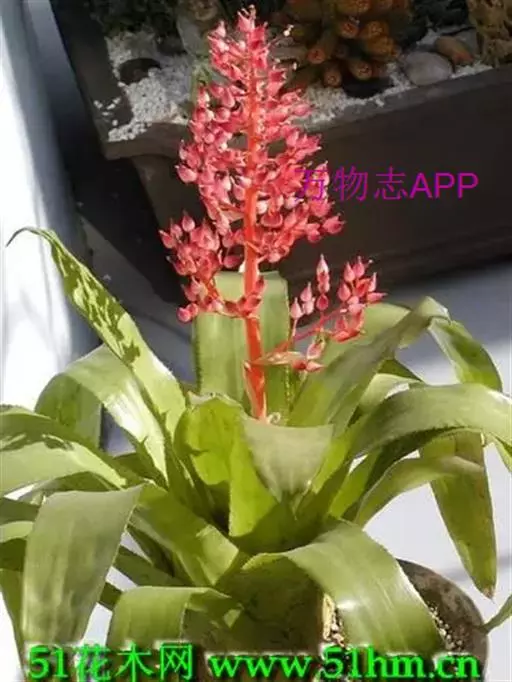 彩叶凤梨 L.B.Sm.) 凤梨科多年生常绿草本。株高25-30厘米,茎短。叶革质,带状,常基生,…