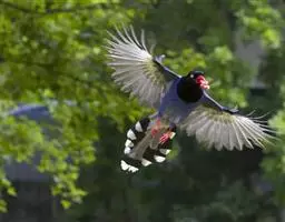 喜鹊:是鸦科、鹊属的一种鸟类。共有11个亚种。体长40-50厘米,雌雄羽色相似,…