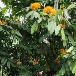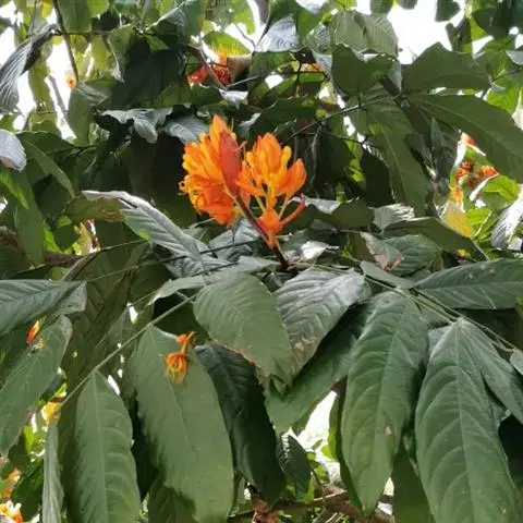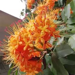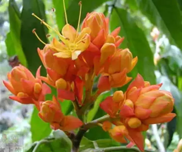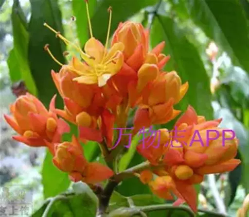无忧花,指中国无忧花(学名:Saraca dives Pierre),又名火焰花。为常绿乔木,枝叶浓密,花大而色红,盛开时远望如团团火焰,因而得名。无忧花属偏阳性树种,喜充足阳光,对水肥条件要求稍高,病虫害少,容易管理,集绿化、美化、彩花于一身。