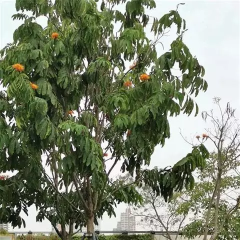 在柬埔寨的金边皇宫里的无忧花,树干高大,花形美丽,系佛教中的圣花。