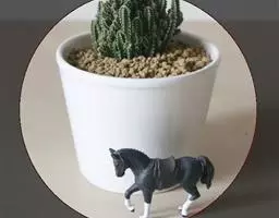 可制作山景拳盆景,宜选用中等深度(盆内深6厘米左右)椭圆形或长方形盆钵。盆钵大小深浅要和种植的山影拳大小及数量成正比。制作山影拳盆景以“粗码”山影拳为好,尤以虎头山影拳为佳。因为虎头山影拳雄劲,皱折多,很象自然界里起伏的峰峦。春季用利刀把山影拳从分叉处切下,放置荫凉通风处一周左右,待切口干燥后,将插条插入素土或沙床中,放置向阳处养护,一周后再浇透水,然后进行正常养护。等其生根后,将插条从盆内扣出再进行定植造型。 制作一个中等大小的山影拳盆景,需要长短不一的插条7~9个。把较长的插条2~3个和较短的插条1~2个植盆钵一端,把剩余3至4个插条植于盆钵另一端。插条要高低错落,参差不齐,有疏有密,前矮后高,有一定层次为好。两组插条之间要留有一定空地,这样好似两座大山之间一块平整的草地。为防止插条歪斜倒伏,在适当位置应该埋人几块吸水石或小、砖块。
