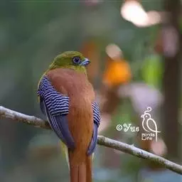 咬鹃共有1科6属39种,属小型攀禽。异趾形,1、2趾向后,3、4趾向前。羽色艳丽,具金属光泽。…