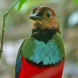 紫顶咬鹃属咬鹃目咬鹃科,是中小型树栖鸟,鸟类一种,有着漂亮羽毛。