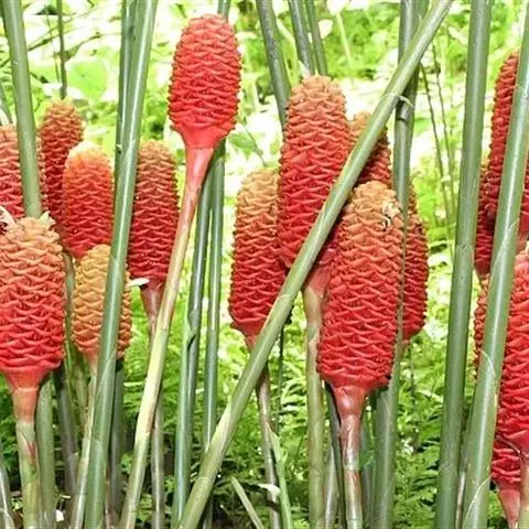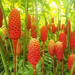 珊瑚姜是姜科、姜属植物。株高近1米。叶片长圆状披针形或披针形,长20-30厘米,宽4-6厘米,…