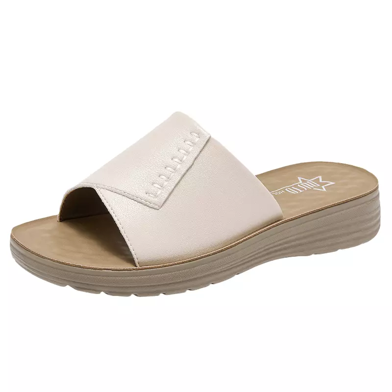 就是在EVA底外包一层皮革后所合成的一种工艺。外缝鞋(如图)的底也大部分是采用这个材料。同点塑布,EVA,布底一样,PVC底也大部分用在日韩拖鞋中。大概因为日韩大部分家庭都是木地板和地毯,这种底的 拖鞋基本不分左右,很方便穿着更换。所以这种底在日韩最为流行,不会沾染灰尘,脏了只要在布上蹭两下就干净了。不过对中国人来说就不怎么好接受了,其实他的脚感还是比较生硬的。