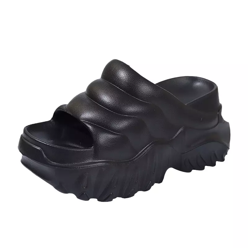 EVA底的优点是:牢固,轻便,易清洗,舒适透气,柔软,色彩丰富。易加工,易黏合,不易脱落。适合做为沙滩鞋,家用休闲拖,旅行拖鞋等。