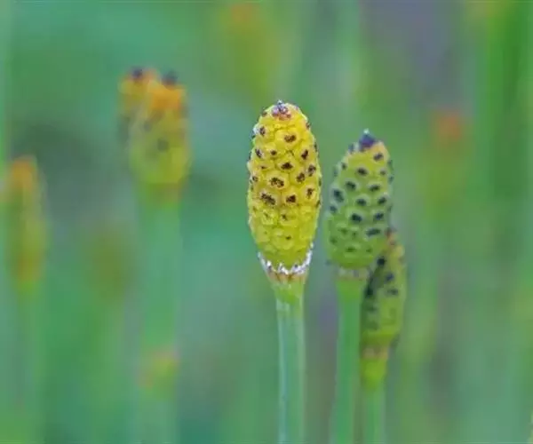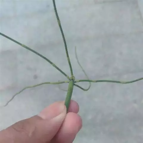 节节草属多年生草本。根茎黑褐色,生少数黄色须根。茎直立,单生或丛生,高达70厘米,径1~2毫米,灰绿色,肋棱6~20条,粗糙,有小疣状突起1列;沟中气孔线1~4列;中部以下多分枝,分枝常具2~5小枝。叶轮生,退化连接成筒状鞘,似漏斗状,亦具棱;鞘口随棱纹分裂成长尖三角形的裂齿,齿短,外面中心部分及基部黑褐色,先端及缘渐成膜质,常脱落。孢子囊穗紧密,矩圆形,无柄,长约0.5~2厘米,有小尖头,顶生,孢子同型,具2条丝状弹丝,十字形着生,绕于孢子上,遇水弹开,以便繁殖。