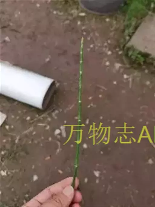 笔管草 笔管草、纤弱木贼、台湾木贼 属于大中型植物 。根茎直立和横走,黑棕色,节和根密生黄棕色长毛或光滑无毛。地上枝多年生。枝一型。高可达60厘米或更多,中部直径3-7毫米,节间长3-10厘米,绿色,成熟主枝有分枝,但分枝常不多。主枝有脊10-20条,脊的背部弧形,要一行小瘤或有浅色小横纹;鞘筒短,下部绿色,顶部略为黑棕色;鞘齿10-22枚,狭三角形,上部淡棕色,膜质,早落或有时宿存,下部黑棕色革质,扁平,两侧有明显的棱角,齿上气孔带明显或不明显。侧枝较硬,圆柱状,有脊8-12条,脊上有小瘤或横纹;鞘齿6-10个,披针形,较短,膜质,淡棕色,早落或宿存。孢子囊穗短棒状或椭圆形,长1-2.5厘米,中部直径0.4-0.7厘米,顶端有小尖突,无柄。