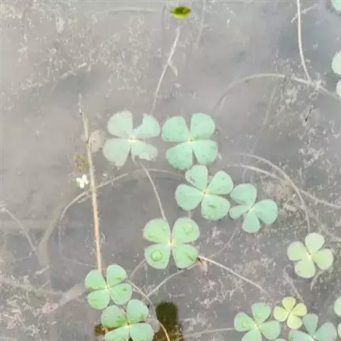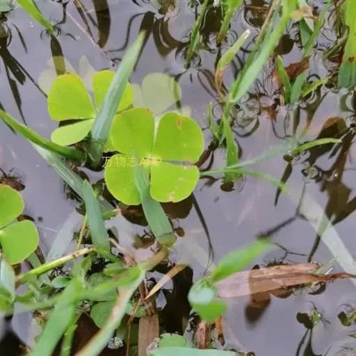 蘋(Marsilea L.),多年生草本植物。根状茎匍匐泥中,细长而柔软,不实叶具长柄,长7~20厘米,叶柄顶端有小叶4片,十字形,对生,薄纸质;小叶倒三角形,长与宽1~3厘米,先端浑圆,全缘,叶脉叉状,下面淡褐色,有腺状鳞片。孢子果斜卵形或圆形,长2~4毫米,被毛,于叶柄基部侧出,通常2、3个丛集,柄长1厘米以下,基部多少毗连;果内有孢子囊群约15个,每个孢子囊群具有少数大孢子囊,其周围有数个小孢子囊。