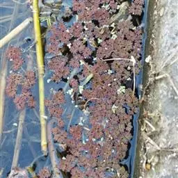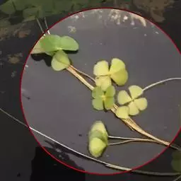 蘋 蘋(pín),小型水生植物,根状茎纤细,横走,具分枝,向下生出纤细须根。叶柄长10-20厘米,叶片由四个羽片组成,呈十字形,长与宽约1-2厘米,外缘为圆形,全缘,基部楔形,幼时有毛,成熟脱落;羽片为倒三角形,草质;叶脉从羽片基部向上呈放射状分叉,组成狭长网眼,几达叶边,无内藏小脉。孢子果卵形,长0.2-0.4厘米,被毛,棕色,木质,坚硬,通常1或2个簇生于叶柄基部,具约1厘米的短柄;孢子果无大小之分,每个孢子果内有大小孢子囊,大孢子囊内仅有1个大孢子,小孢子囊内有多个小孢子。染色体 2n=40。