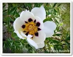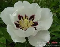 与牡丹的区别:花瓣内面基部具深紫色斑块。叶为二至三回羽状复叶,小叶不分裂,稀不等2-4浅裂。花大,花瓣白色。