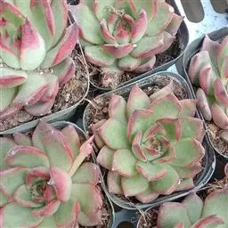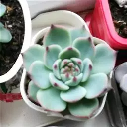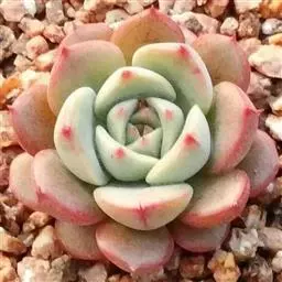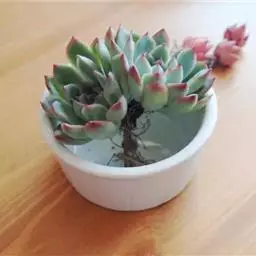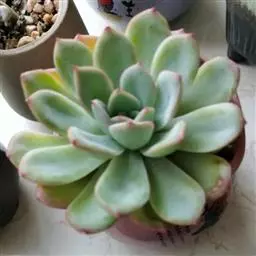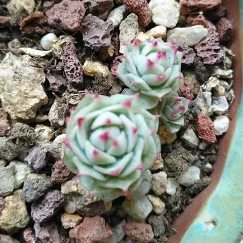 吉娃莲,景天科拟石莲花属,别名:吉娃娃,吉娃莲,植株小型,无茎的莲座叶盘非常紧凑。卵形叶较厚,带小尖,…