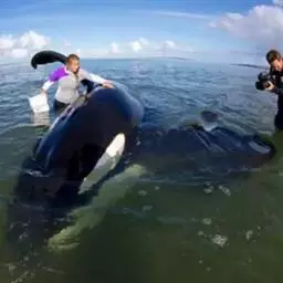 虎鲸,是鲸偶蹄目海豚科虎鲸属哺乳动物。成体体重6600千克,平均体长6-9米;头部略圆,…