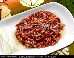 京酱肉丝,是一道知名度很高的菜肴,它是北京菜中的经典代表菜之一。制作时选用猪瘦肉为主料,辅以甜面酱…