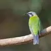 白腹凤鹛是绿鹃科、绿凤鹛属的小型鸟类,体长10-12厘米。上体从头到尾黄绿色,有短的羽冠,…