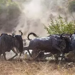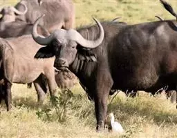非洲野水牛:共有5个亚种。头体长2.1-3.4米,身高1-1.7米,体重300-900千克。胸膛宽…