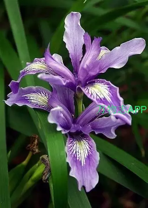 双色野鸢尾为多年生草本植物,叶子呈剑状淡绿色。…