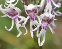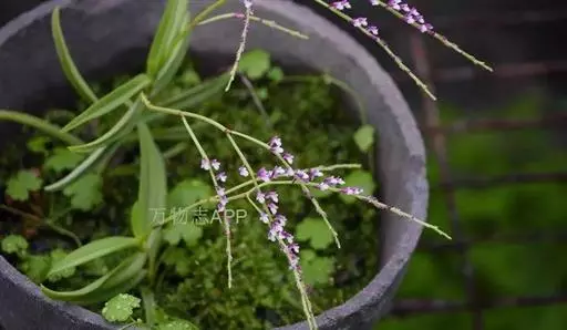 匙唇兰(学名:Schoenorchis gemmata (Lindl.) J. J. Smith):茎质地稍硬,下垂,通常弧曲状下弯,稍扁圆柱形,不分枝。叶扁平,伸展,对折呈狭镰刀状或半圆柱状向外下弯。圆锥花序从叶腋发出,比叶长或多少等长,密生许多小花;花不甚开展;花瓣紫红色,倒卵状楔形,长1.1-1.5毫米,宽约1毫米,先端截形而其中央凹缺,具1条脉;唇瓣匙形,3裂。蒴果近卵形,长约6毫米,粗3毫米。花期3-6月,果期4-7月。