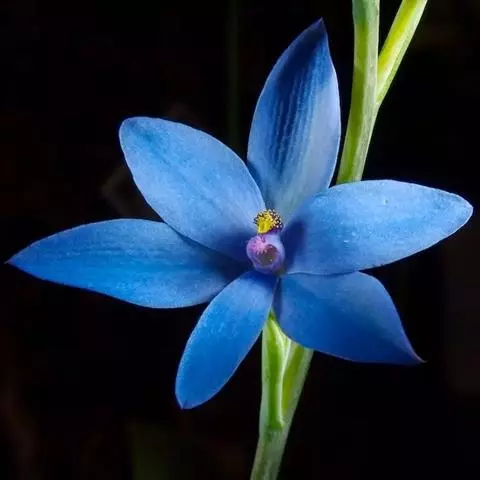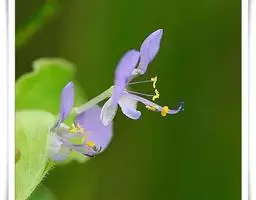花序梗短,长1~1.5厘米,基部有1披针形苞片。花序在花期直立,果期下弯,花通常3~5朵(稀有10余朵),或有1~3朵,蓝色。花被片卵状披针形或长圆形,长1~1.5厘米,花梗长到1厘米,雄蕊6枚,其中1枚较大,花药长圆形,其余5枚较小;花丝丝状。