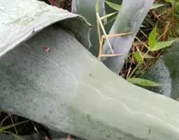 上下表皮细胞长方形或方形。外被角质层。栅栏细胞1列。支柱细胞大型,多分枝,壁厚,层纹明显,贯穿于叶肉组织中。