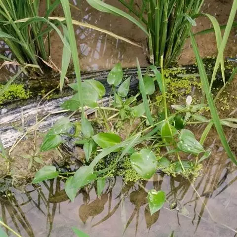 水生草本;根状茎极短,具柔软须根。茎直立或斜上,高(6-)12~35厘米。全株光滑无毛,叶基生或茎生,叶片形状和大 鸭舌草 小变化较大,由心状宽卵形、长卵形至披针形,长2~7厘米,宽0.8~5厘米,顶端短突尖或渐尖,基部圆形或浅心形,