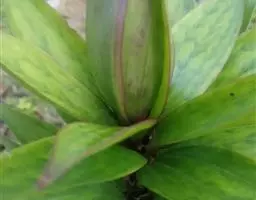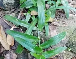 全缘、具弧状脉。叶柄长10~20厘米,基部扩大成开裂的鞘。鞘长2~4厘米,顶端有舌状体,长约0.7~1厘米。总状花序从叶柄中部抽出。该处叶柄扩大成鞘状。