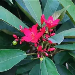 琴叶珊瑚(学名:Jatropha integerrima Jacq.)是大戟科痳风树属植物。常绿灌木,花红色,植物体有乳汁,乳汁有毒。单叶互生,倒阔披针形,常丛生于枝条顶端。叶基有2-3对锐刺,叶端渐尖。聚伞花序,花瓣5片,花冠红色;且为单性花,雌雄同株,自着生于不同的花序上;另有粉红品种。蒴果成熟时呈黑褐色。
