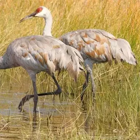 丹顶鹤:是鹤科、鹤属的一种大型涉禽,体长120-160厘米。颈、脚较长,通体大多白色,头顶鲜红色,…