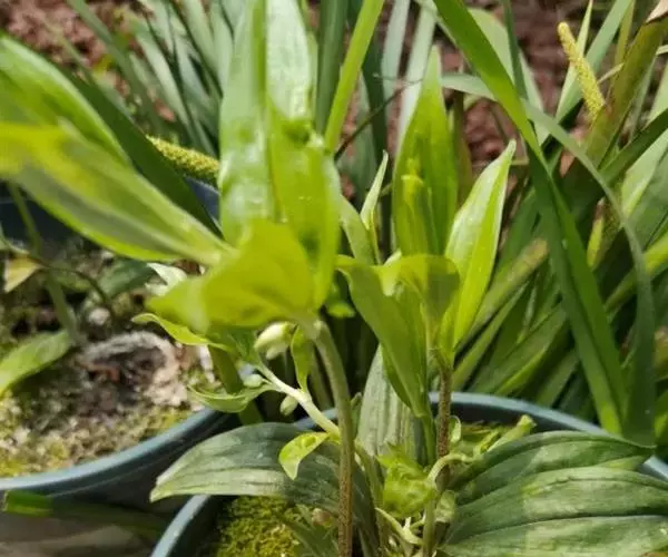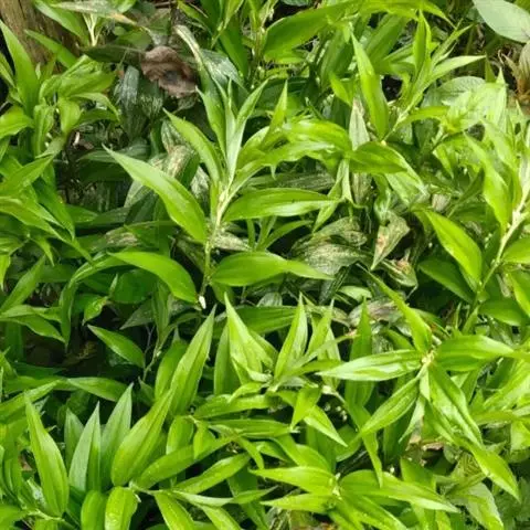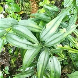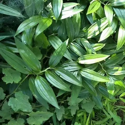 根状茎圆柱状,粗3-10毫米。茎高10-40厘米。叶厚纸质,卵形、卵状披针形或卵状椭圆形,长3-8厘米,宽1-4厘米,先端渐尖或稍尾状,基部通常近截形或略,带心形,具柄,两面无毛。