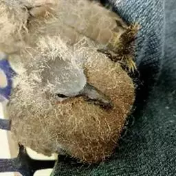 幼鸟和成鸟羽色相似,但前额为乳黄白色,羽端沾黑色,上体棕红色,较成体鲜艳。黑斑也较成体少。尾上覆羽棕色,不具横斑。颏裸露,仅具绒羽。其余同成鸟。