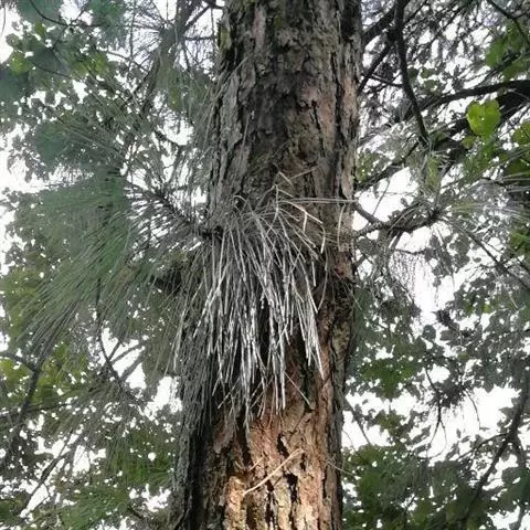 黄山松是松科松属乔木状。树高30米;树皮深灰褐色,会裂成不规则鳞状厚片或薄片;枝平展,…