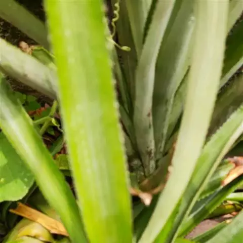 斯里兰卡凤梨 凋萎病:植株发病后,叶片变软下垂,叶色淡绿至红色,基部腐烂,最后全株枯死。此病是粉介壳虫为害所引起。
