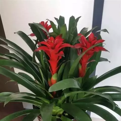 菠萝花从发芽,到成长,再到灿烂的盛开。心无旁骛,行者无疆,即使方寸之土,也要深入精髓。这种追求完美的信念一直伴随着菠萝花。众多的小花密聚在花茎上,形成粗粗的花穗,花穗先端的苞片成放射状伸展。每一朵小花都呈星形。花有黄色的、淡绿色的、粉色的和白色的等。菠萝是一种十分美丽既可观花又能赏叶的室内盆栽花卉。它以基特有的莲座状株型,鲜艳的穗状花序,较长的花期逐渐成为年宵花市场上的“宠儿”。