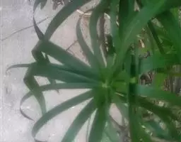茎短。叶多数,莲座式排列,剑形,长40-90厘米, 宽4-7厘米,顶端渐尖,全缘或有锐齿,腹面绿色,背面粉绿色,边缘和顶端常带褐红色,生于花序顶部的叶变小,常呈红色。