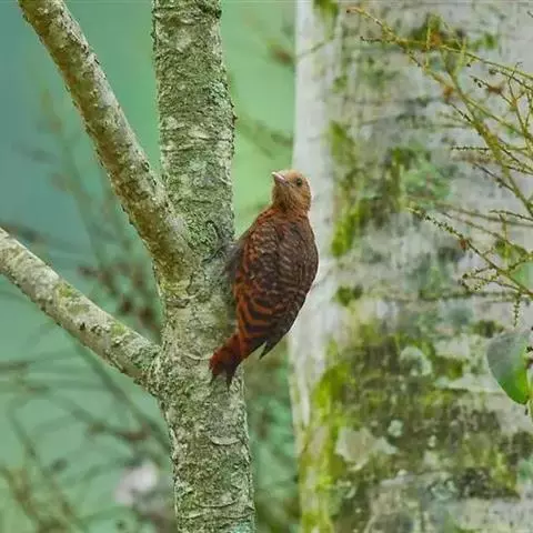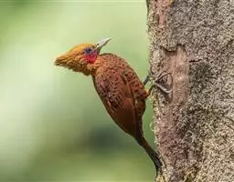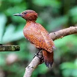 栗啄木鸟:是一种红褐色啄木鸟,体长21厘米。雄性成鸟整个头棕色,…