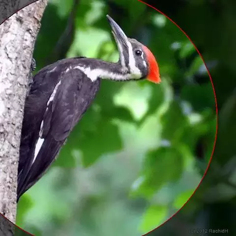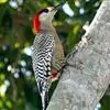 红腹啄木鸟成年雄鸟头项有红帽,翅膀和上体是黑白相间的斑纹状羽毛,腹部有一片红羽毛。头亦大,但颈较长,…